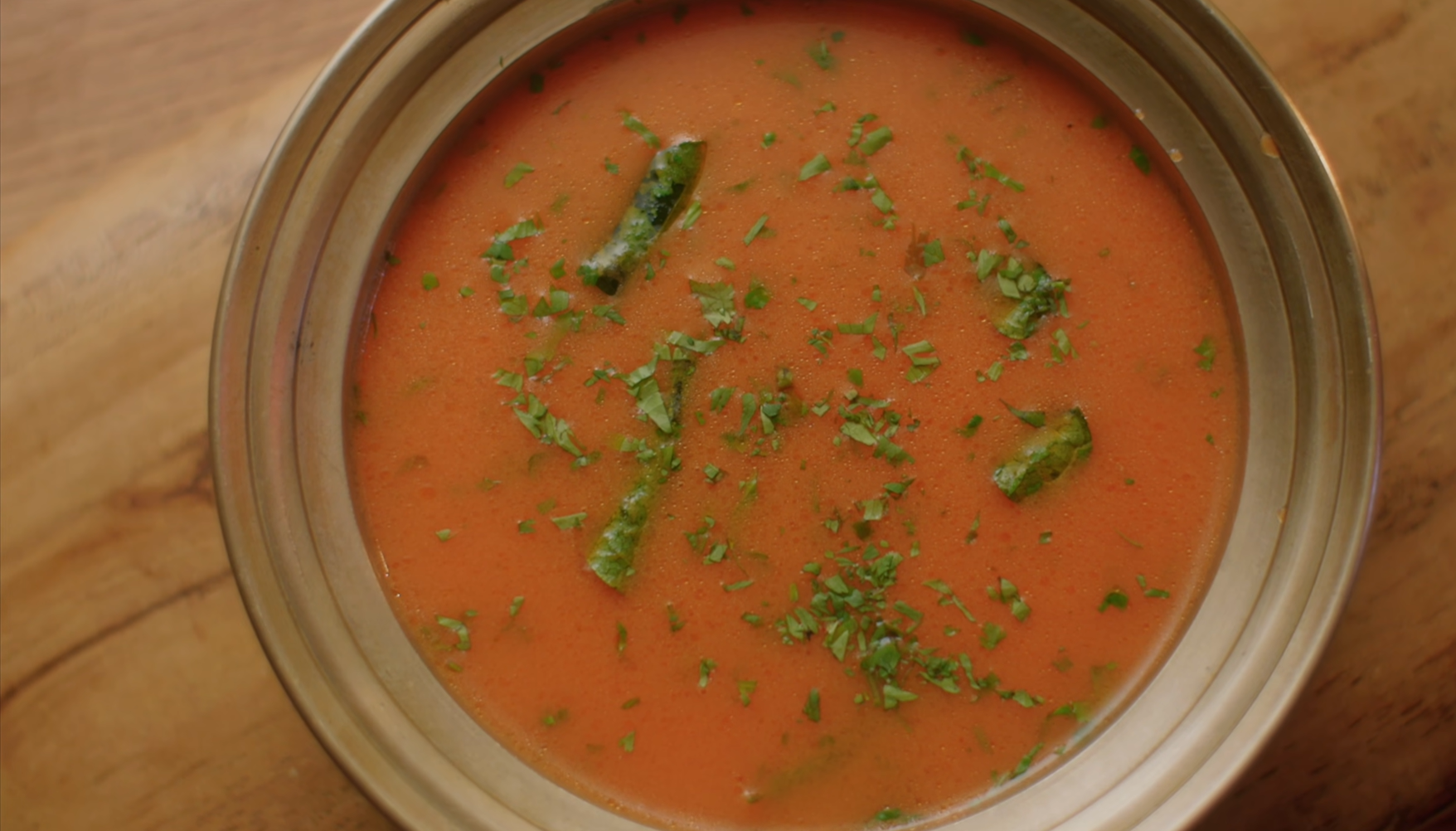 Tomato Saar is a Konkani/Maharashtrian-style soup that is smooth, light, and mildly spiced, often finished with coconut milk or tempered coconut oil.